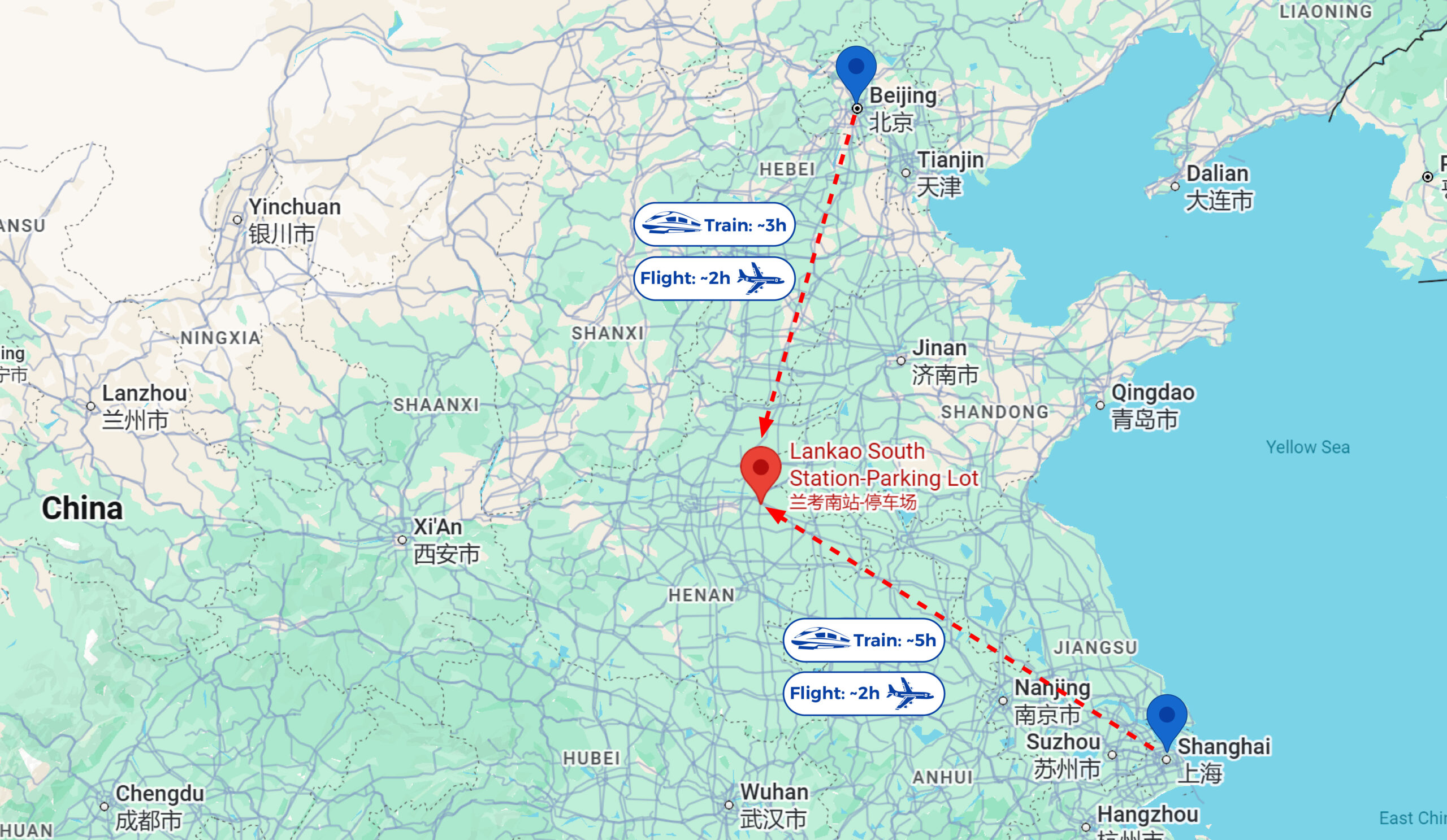 Plan B:  3 hours by high-speed train from Beijing West Railway Station to Lankan South Station.