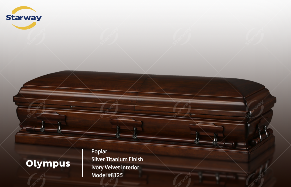 OLYMPUS / Poplar / Silver Titanium Finish / Ivory Velvet Interior / Satin Accents / Walnut Design / Closed Metal Construction / Metal Fittings Included