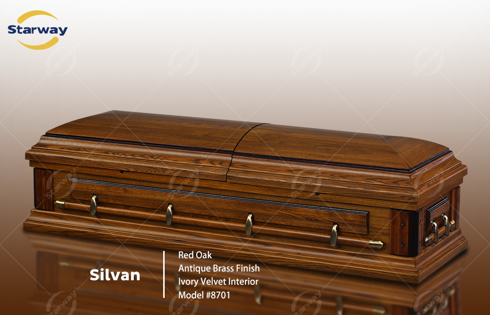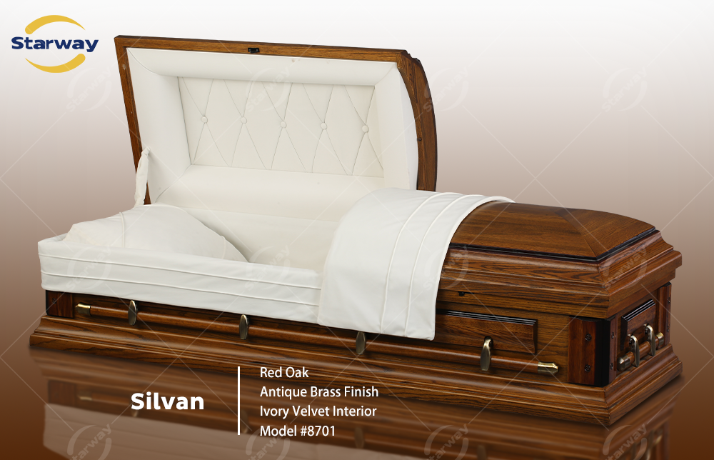 Red Oak / Antique Brass Finish / Ivory Velvet Interior / Model #8701