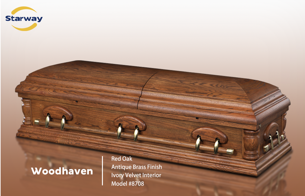 Red Oak / Antique Brass Finish / Ivory Velvet Interior / Model #8708