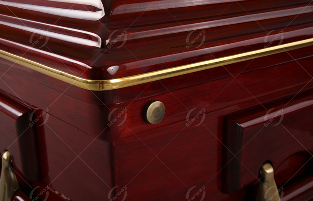 MALORIE GOLDEN STRIPE / Poplar / Antique Brass Finish / Rosetan Crepe Interior / Polished High Gloss / Lux Cherry Design / Closed Metal Construction / Metal Fittings Included