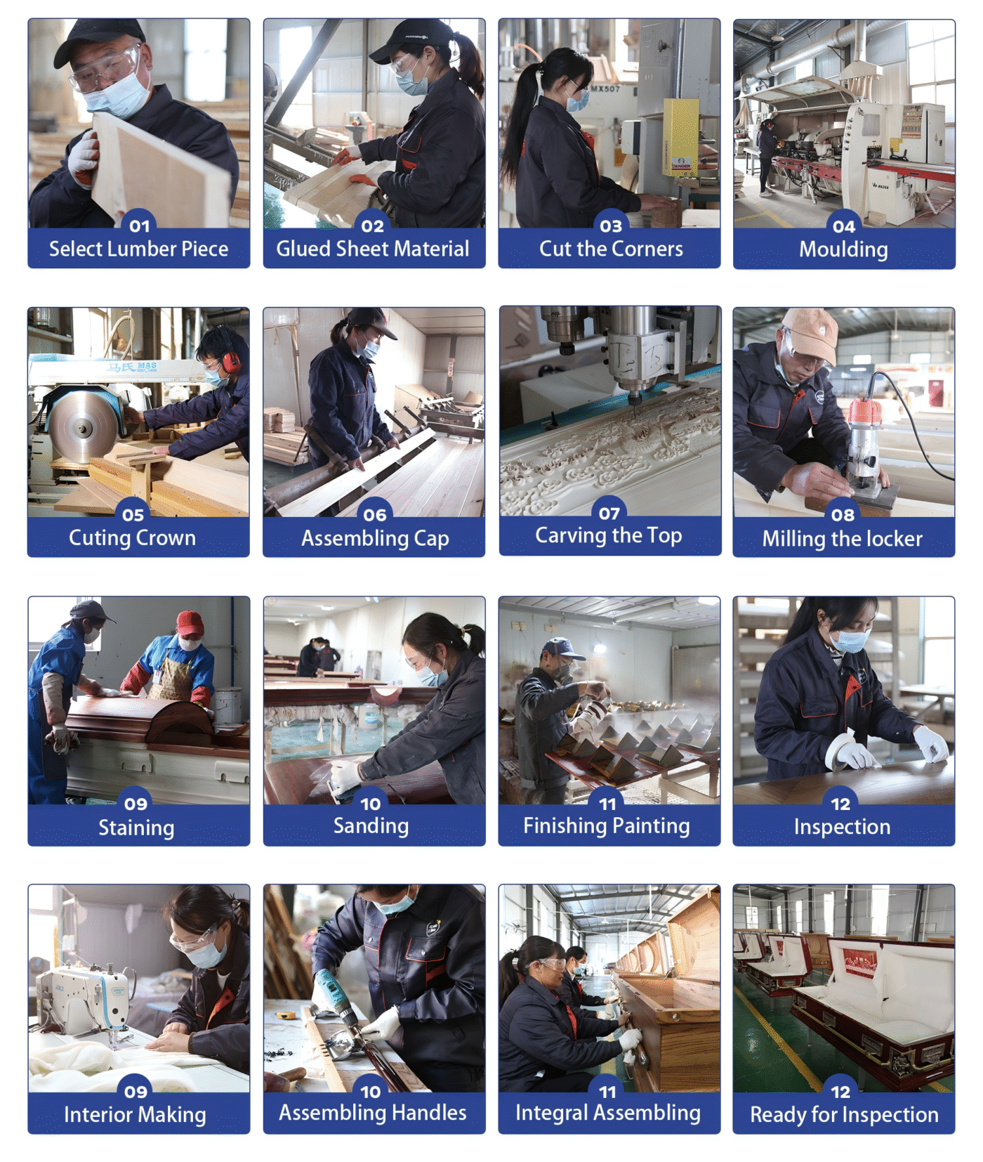 Each of our caskets are carefully designed, hand-painted and computerized to draw professional production drawings nowadays by professional and experienced technicians. Every processes is required to be produced in strictly accordance with the drawings to ensure that there are no deviations and errors in sizes and shape.